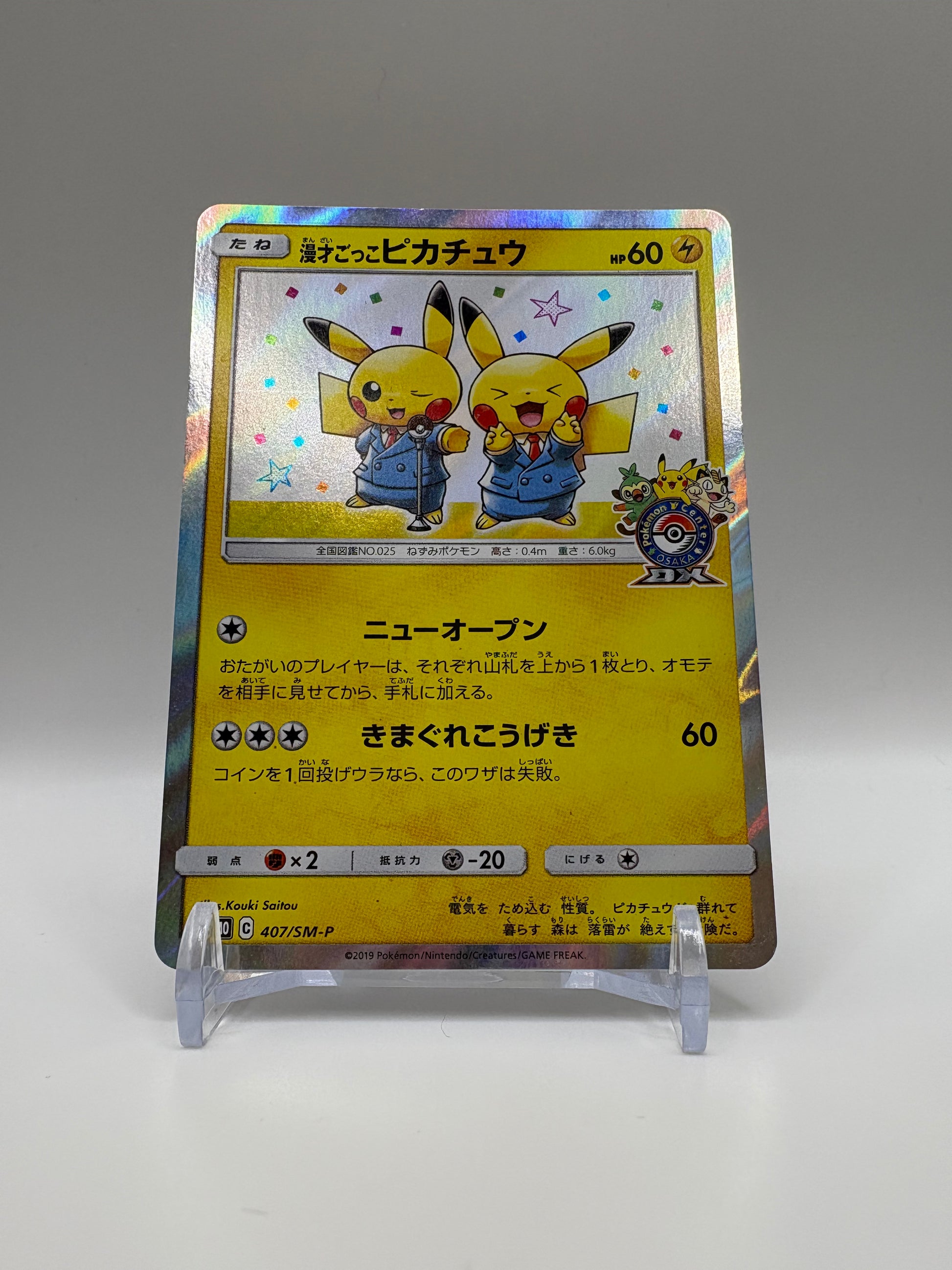 This is a Comedian Pikachu Sun & Moon Japanese promo card from the Osaka Pokemon Store DX opening.